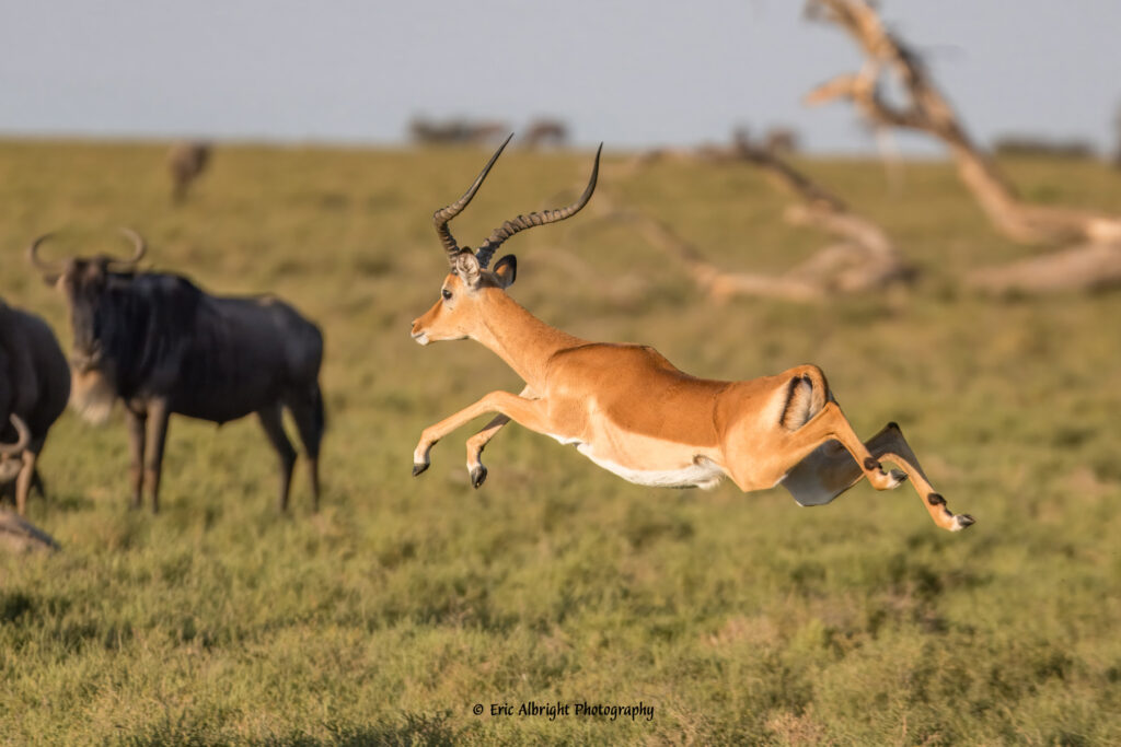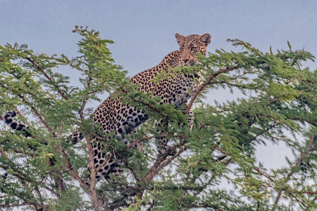 For most people’s lives, they have read about and seen videos and photos of African wildlife. But nothing compares to actually being in their presence. To be surrounded by a herd of elephants, the sounds, smells and sights are all encompassing. To be able look into the alert eyes of a majestic male African Lion and see his confidence cannot be fully described. To watch the age-old battle between Lions and Hyenas play out right before my eyes and seeing the brutality of it is something that will stay with me for a lifetime. To see the struggles of a mother Gazelle as she tries to protect her calf from an attacking Cheetah, only to lose in the end; but to then see that the Cheetah has her own cubs to feed. Finding a Leopard and her young cub in a large tree out of sight of her enemies, like Lions or Hyenas who would kill her and her cub if she was found. These are all scenes that still play out in my mind’s eye today and I know will stay with me for the rest of my life.